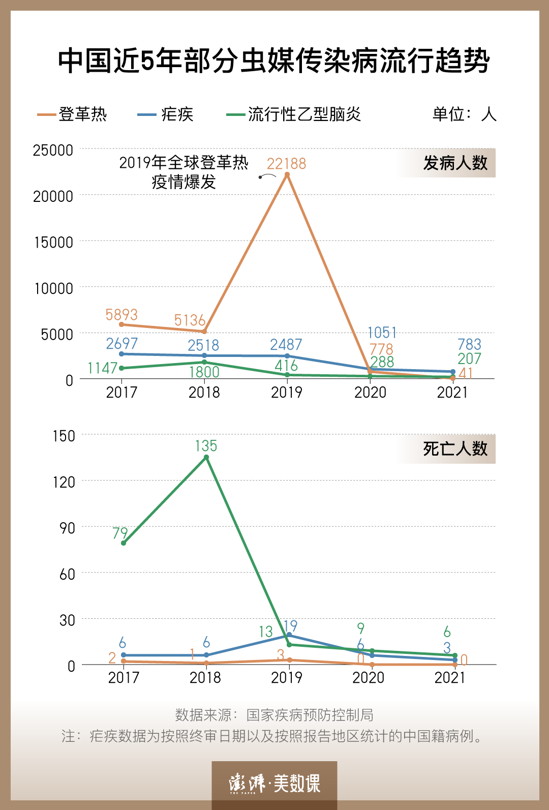 实际上,蚊虫作为一种重要的病媒生物,可以通过多种途径影响或者危害人类的正常生活。在 2021 年,中国总共报告了 80951 例自然疫源及虫媒传染病病例,死亡人数 230 人。蚊子、蜱虫、隐翅虫等蚊虫,看上去个子不大,却可以让人类感染上各种严重的疾病。