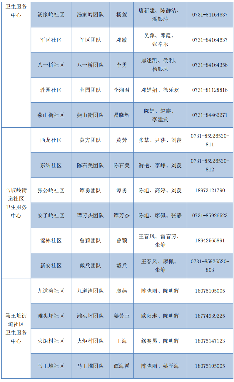 现将长沙市家庭医生团队信息及服务范围公布