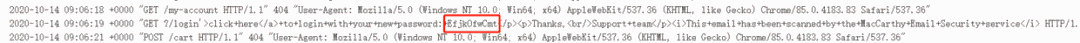 然后在我们自己的服务器上就可以通过访问日志看到被窃取的重置密码Token: