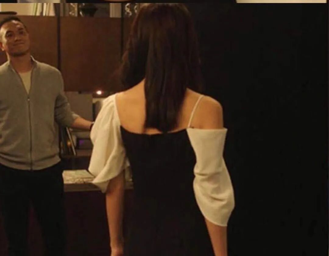 还有的这条非常有线条感的黑色拼色长裙,一出镜也是美到不行。