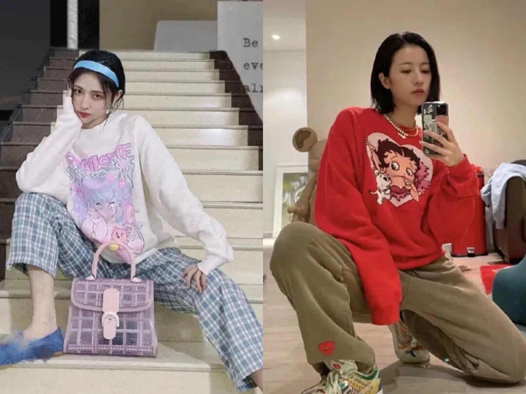 当年超火,尤其是这个系列的oversize卫衣,很多艺人都穿过。