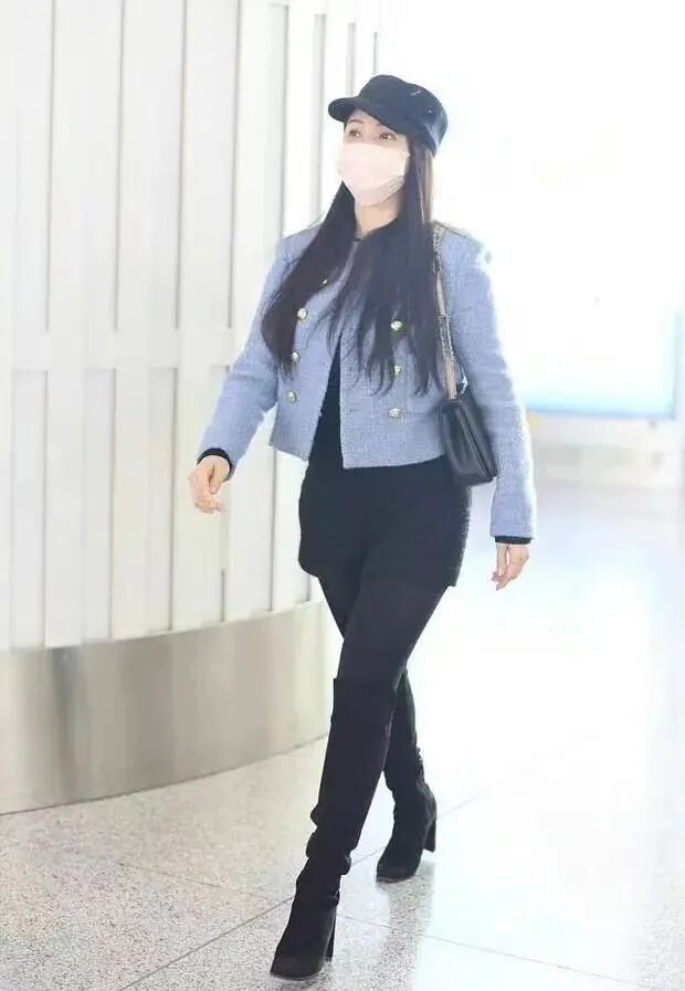 短款外套在邓家佳的下班Look中出镜率也很高。而且她很偏爱优雅的小香风。