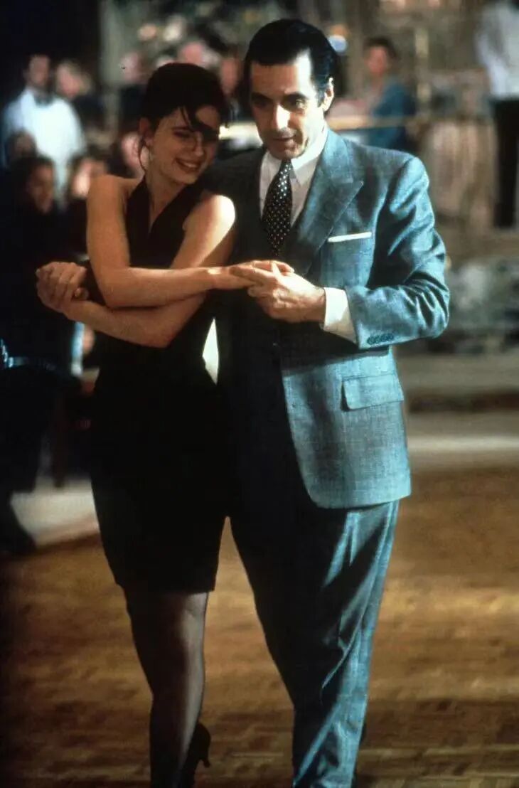 《闻香识女人》中,与史法兰中校共舞的少女唐娜正是一袭黑裙配黑丝的打扮,恰到好处的优雅。