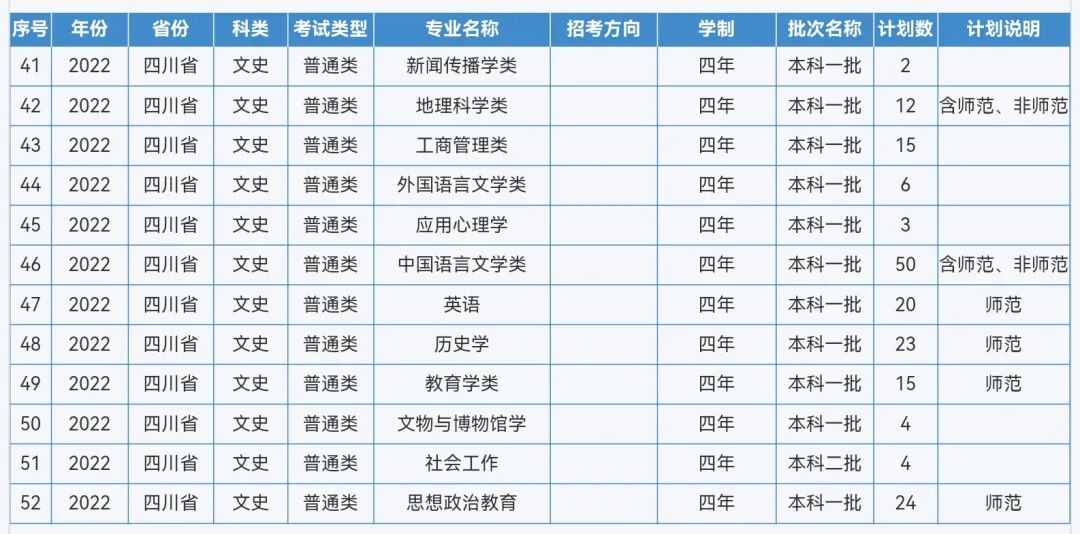 重庆师范大学2022年本科招生计划