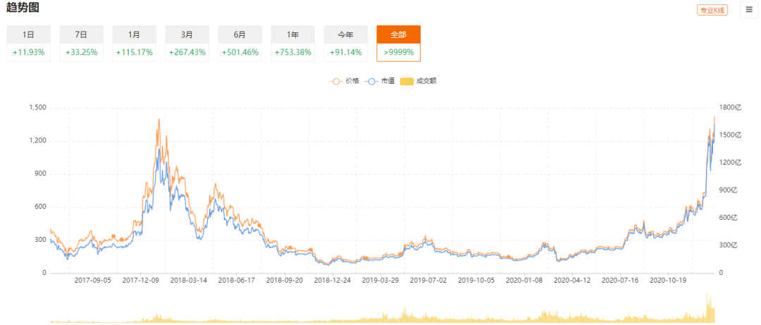 所谓机构投资者和大型企业入局。横向对比成熟的美股,其一直以来机构化是其一大特征,2020年机构开始蜂拥加密市场,这也是加密市场正在成熟的表征之一。
