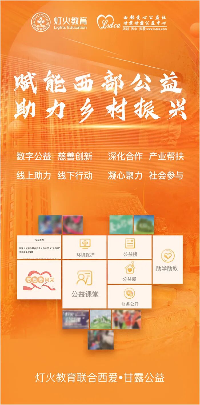 据悉,甘肃甘露公益中心是2015年经甘肃省民政厅审核注册的非盈利性社会组织,前身为2003年创建的中国西部慈善网,2007年8月更名为西部爱心公益网,现为甘肃甘露公益中心下属网站。自2003年中国西部慈善网建立以来,依托网络平台在全国设立工作站21个,网站以公益性、开放性、多样性、务实性为公益宗旨,紧紧围绕“弘扬网络正能量”这一总体目标,搭建网络服务平台、汇聚社会公益资源,开展网络公益宣传、传播公益理念和公益文化,策划网络公益项目、推动社会问题解决。甘肃甘露公益中心创始人赵林长年深耕西部公益事业,自身的志愿服务时间逾1.6万小时,在西部地区为贫困学校筹建图书室67个,资助贫困学生1.8万余人,资助贫困家庭600余个。在赵林的带领下,公益团队多次荣获各地表彰,事迹多次被各类媒体报道。正是这些耀眼的成绩,赢得了灯火公益的尊重与青睐,双方在积极的沟通下达成了深度合作,并肩而行。