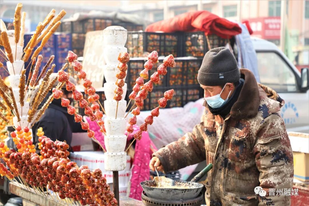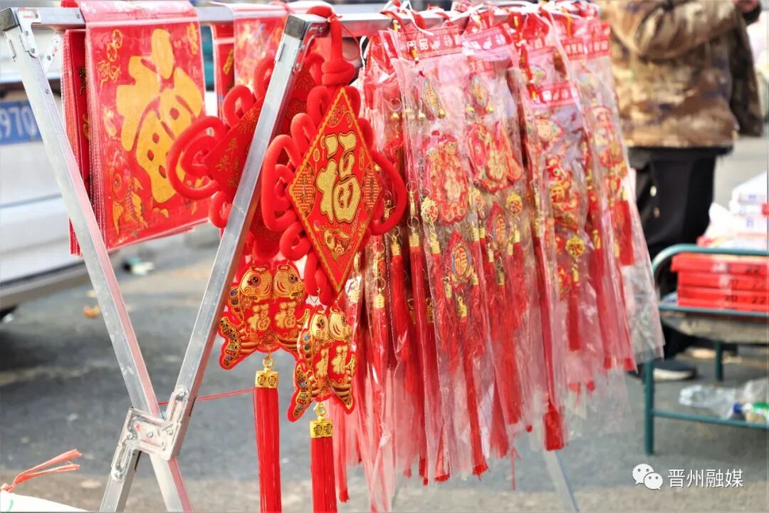 集市上,各式各样的摊位摆得满满当当,大红的冰糖葫芦、橙黄的橘子,鸡、鱼、肉、瓜子、花生、蔬菜等各类商品应有尽有,人们穿行在热闹的集市上,尽情挑选自己需要的年货。糖和瓜子是家家户户过年必备的零食,集市上卖糖的摊位用一个个小筐把各种糖果区分开,看起来干净利落又五彩缤纷。浓浓的年味,怎么少得了家家户户大门两旁的红灯笼和吉祥如意的红春联,挂上红灯笼,就是将那朴实的幸福高高悬挂在门楣上;贴上红春联,就是把对美好生活的渴望浓缩在红红的喜庆里,数不清的各种款式的春联、福字、窗花,让人挑花了眼。