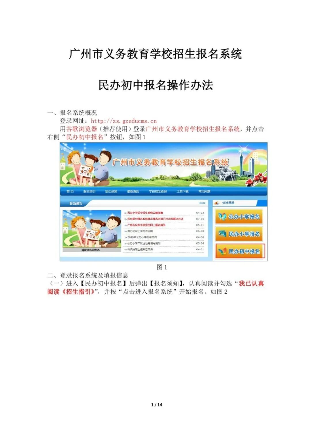 在规定时间内,家长可登录广州市义务教育学校招生报名系统(http://zs.gzeducms.cn),填报1至2个平行志愿。报名时应充分了解民办学校办学条件、收费标准等情况。