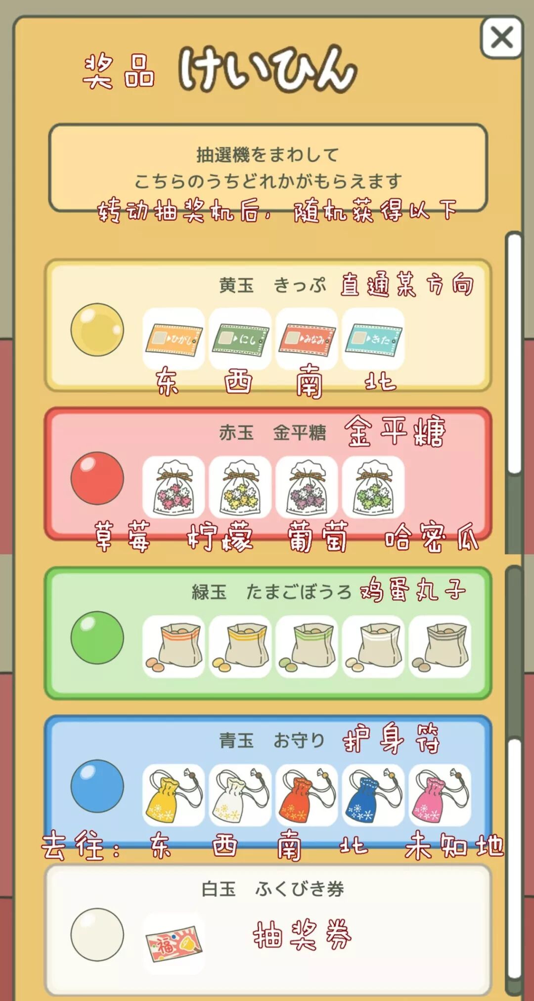要玩一个游戏当然需要先搞懂最基本的操作。旅行青蛙的玩法其实非常简单,但由于它是一款日本手游,所以对大部分的玩家而言最大的难点也就是——看不懂。但勤劳的网友们自然也考虑到了这一点,早就做出了对应的翻译:
