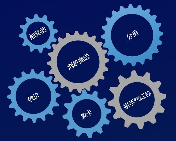拼团和砍价都很好地利用了微信的社交属性,借助关系链达成“波纹营销”,让小程序像石子投入水中的波纹一般,激起层层波纹并不断扩大。
