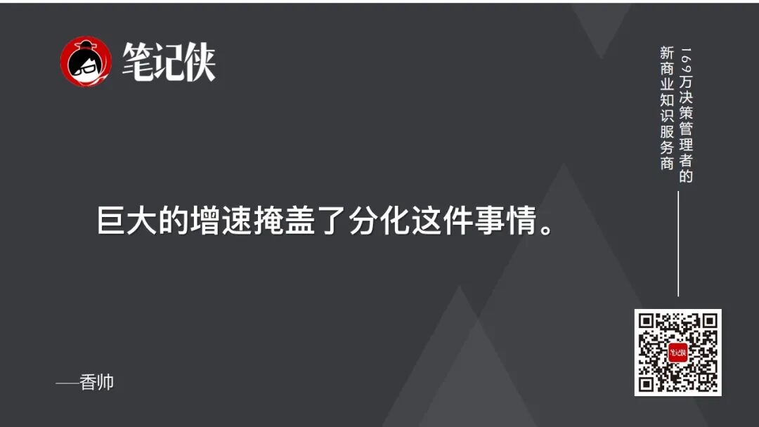 中国还没有彻底进入存量经济时代,还在增量的尾巴上。只要有增长,分化的问题就会被掩盖。