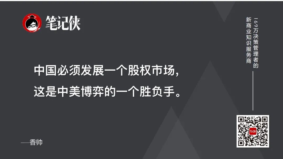 中国必须发展一个股权市场,这是中美博弈的一个胜负手,所以国家政策要将居民储蓄往股权市场上引。