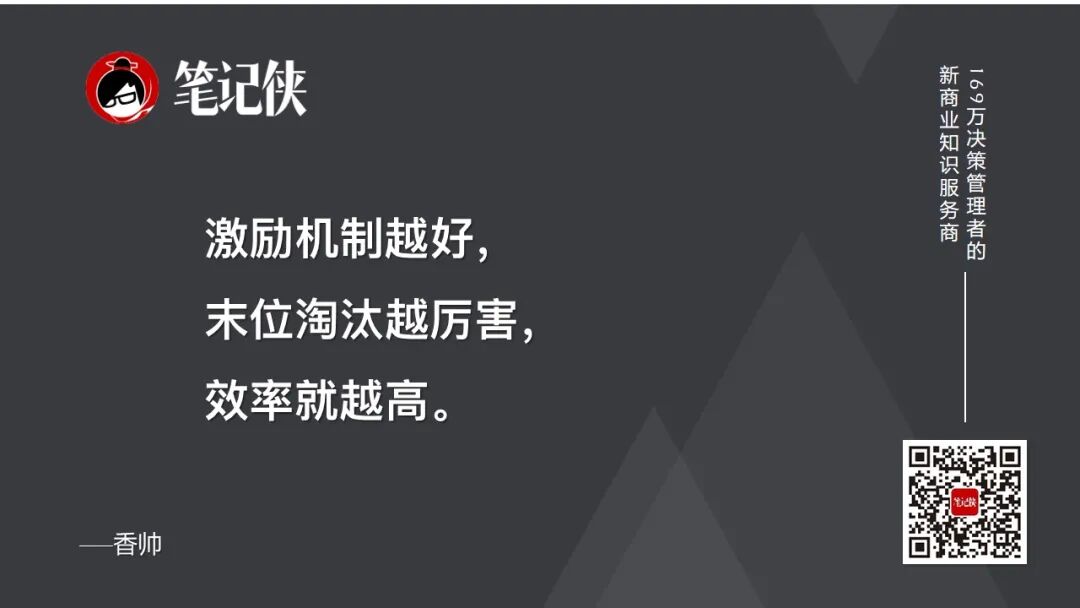 激励机制越好,末位淘汰越厉害,效率就越高。优秀的机构一定是奖惩制度特别分明的,不平等是进步的根源。