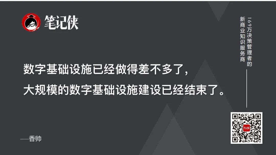 现在虽然还有空间,但数字基础设施已经做得差不多了,大规模的数字基础设施建设已经结束了,就要回到本质。