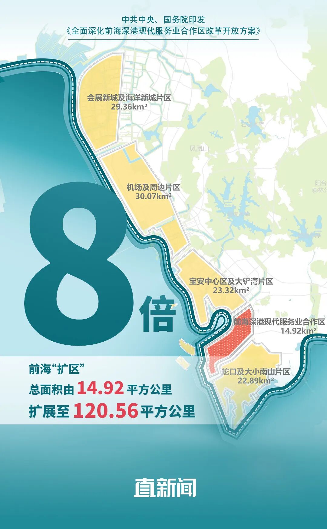 昨日(6日),《全面深化前海深港现代服务业合作区改革开放方案》(以下简称《方案》)正式对外发布,前海合作区总面积由14.92平方公里,扩大至120.56平方公里。在这份近5000字的《方案》中,“扩区”和“改革开放”成为关键词。其中,“合作”出现48次,“前海”出现43次,“发展”出现37次,“港澳”出现34次。