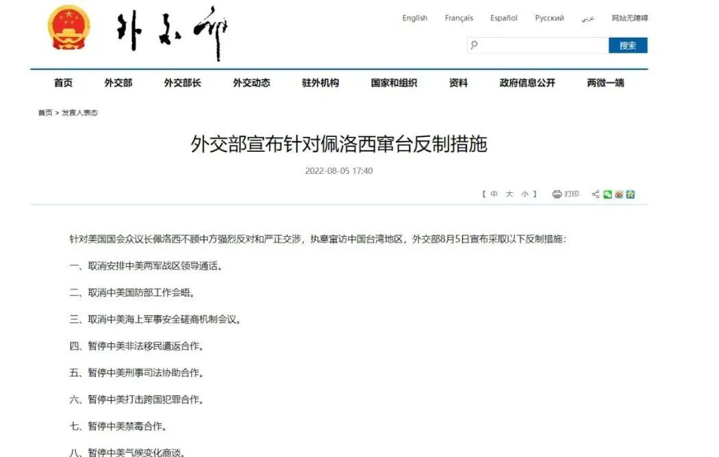 特约评论员 管姚:在佩洛西窜台掀起台海惊天巨浪当天,曾三获普利策奖的美国著名媒体人托马斯·弗里德曼,就已在《纽约时报》个人专栏标题中炮轰佩洛西的行径“无比鲁莽”,他在专栏开篇连用了三个关键词来定性:utterly reckless, dangerous and irresponsible,即无比鲁莽、危险、不负责任。那么佩洛西冒天下之大不韪顶风窜台到底有多鲁莽、多危险、多么不负责?今天外交部宣布的八项反制措施,包括对佩洛西的制裁,一定程度上可以说是对这三大后果关键词的量化呈现,但必须要强调,这绝不是量化呈现的全部,就像昨天我在评论中说的,解放军进行的环岛实弹演训成为全球关注焦点,尤其是过岛射东风导弹那记重拳,但那也只是“拭目以待“的一部分,同样,外交层面的反制,当然也是中方反制系列组合拳的构成。
