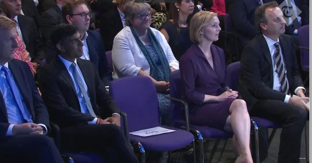 特拉斯的演讲非常简短,只有五分钟,她对一众党员表达了感谢,特别提到了自己的对手苏纳克,称赞他有过人的才华,她还感谢了未到现场的约翰逊。