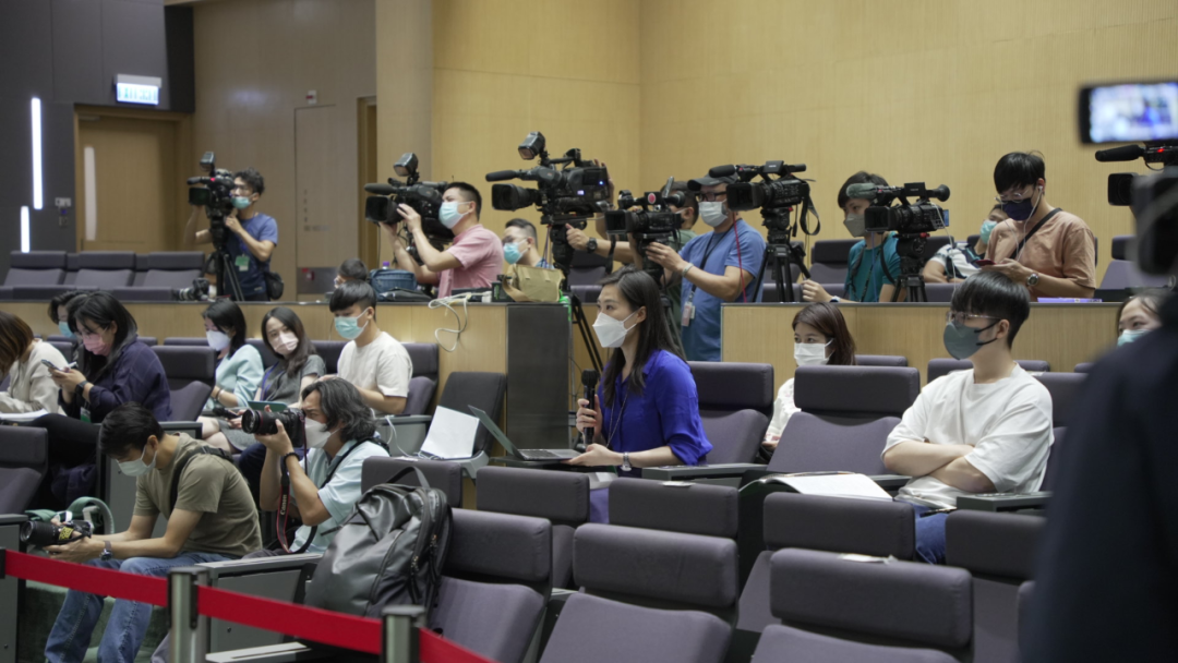 深圳卫视直新闻驻港记者丘倩怡提问(摄像:李文涛)