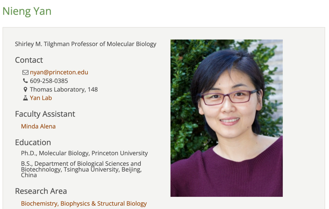 普林斯顿大学官网上关于颜宁的简介