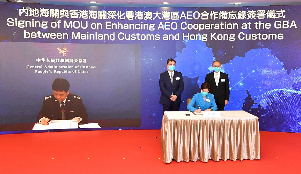 今日下午,香港海关举办香港认可经济营运商(AEO)计划展开十周年庆祝仪式,香港商务及经济发展局长丘应桦、香港海关关长何珮珊等出席。庆祝典礼上,何珮珊与和国家海关总署企业管理及稽查司司长王胜签署深化粤港澳大湾区AEO合作备忘录。签署仪式在丘应桦和中联办经济部副部长兼贸易处负责人刘亚军的见证下以视频形式举行。