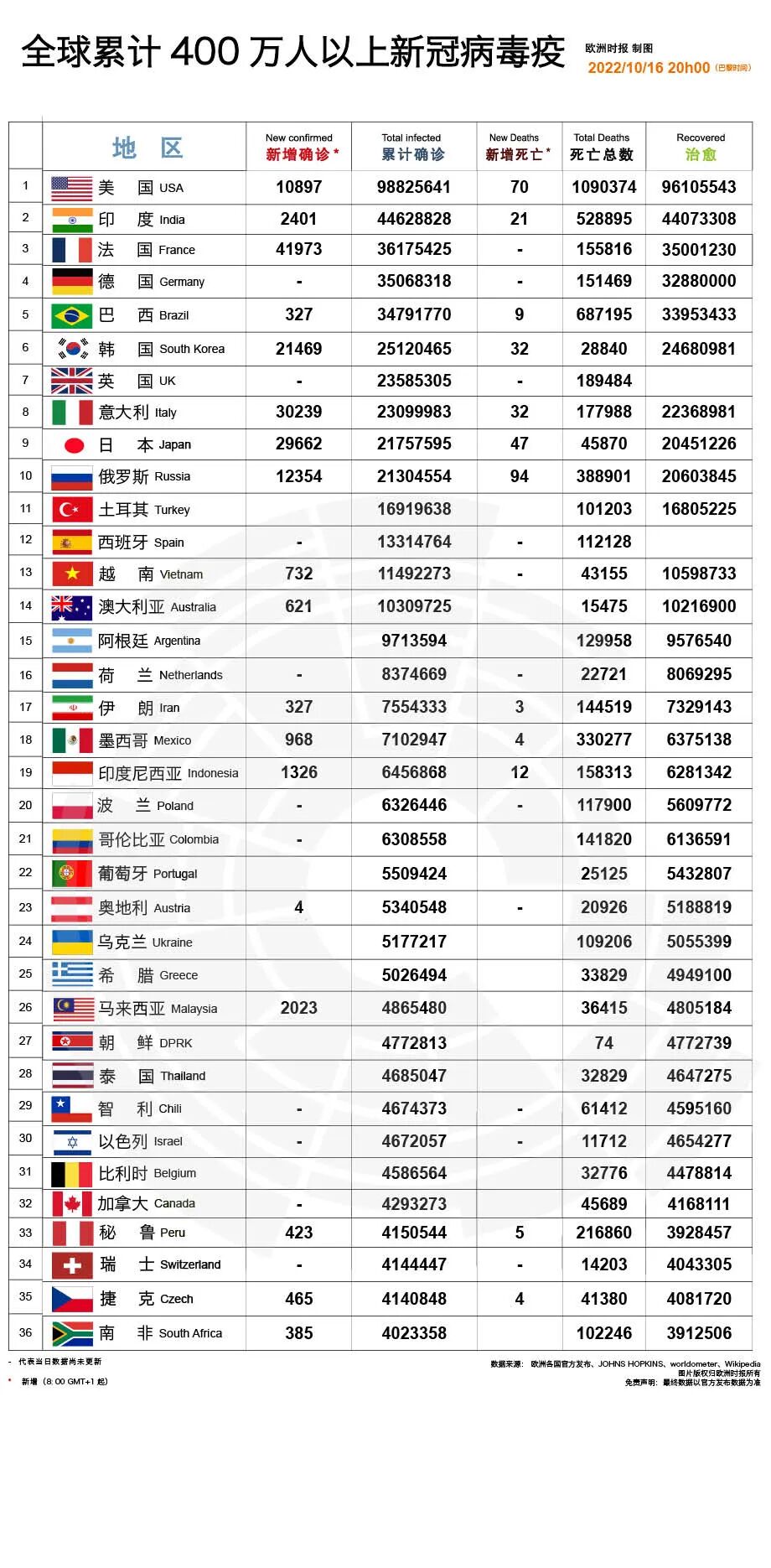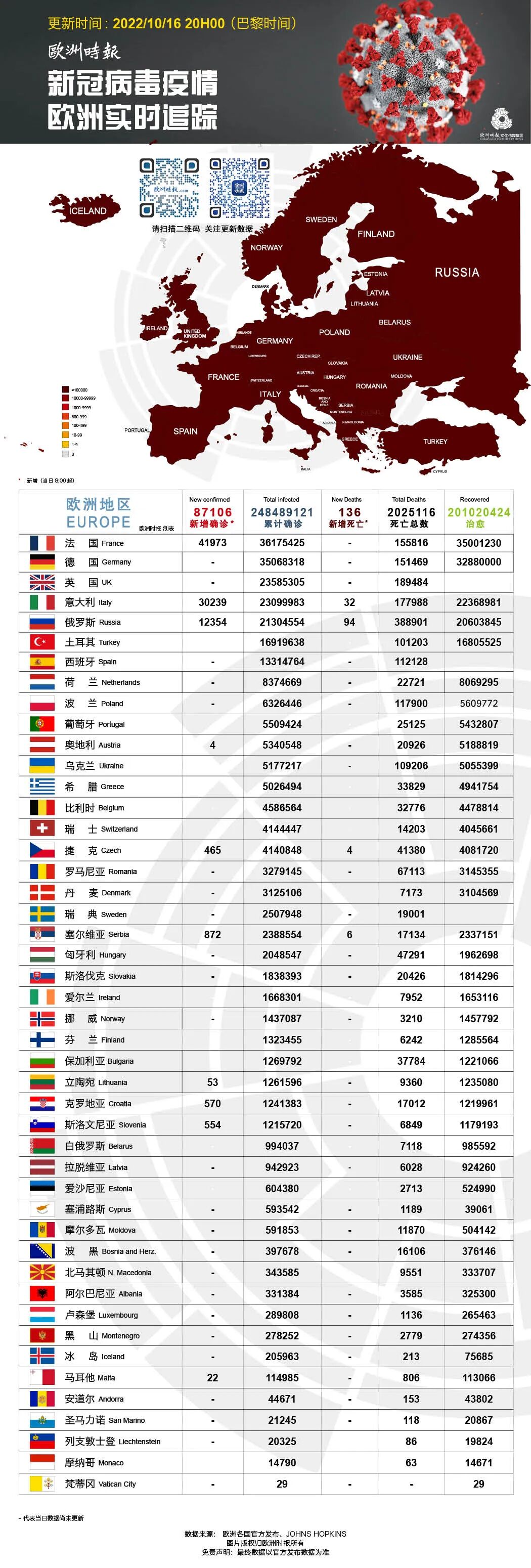 更多欧洲疫情数据,请浏览文末疫情图。