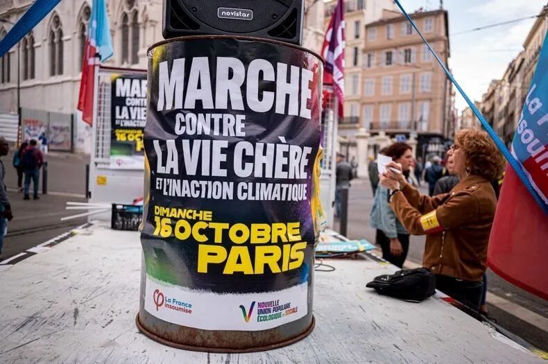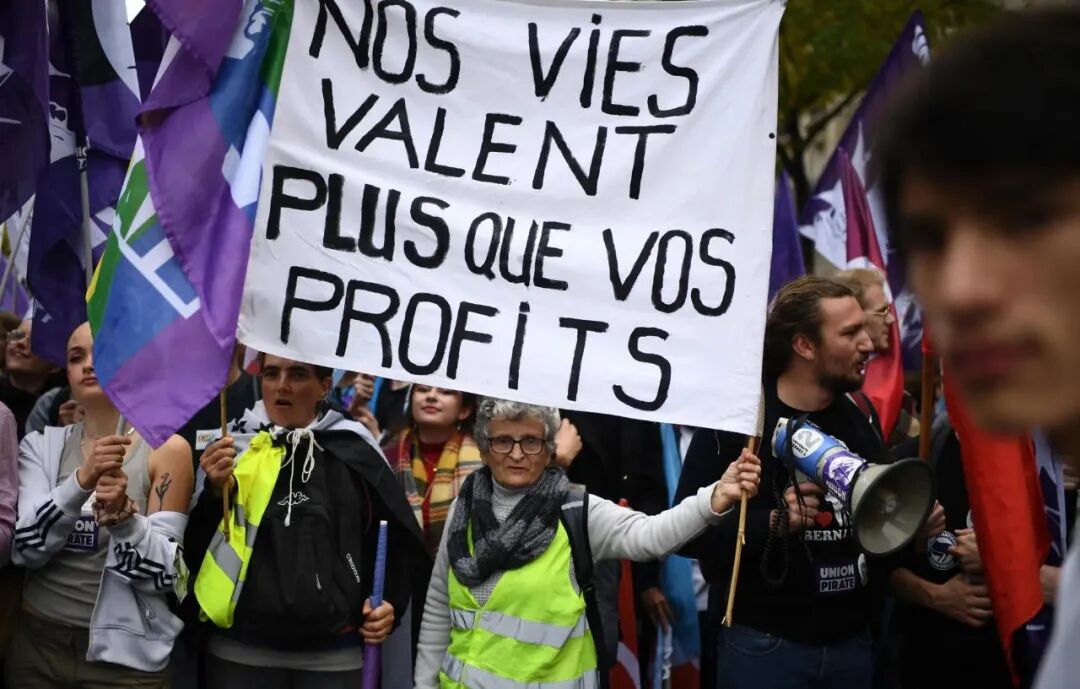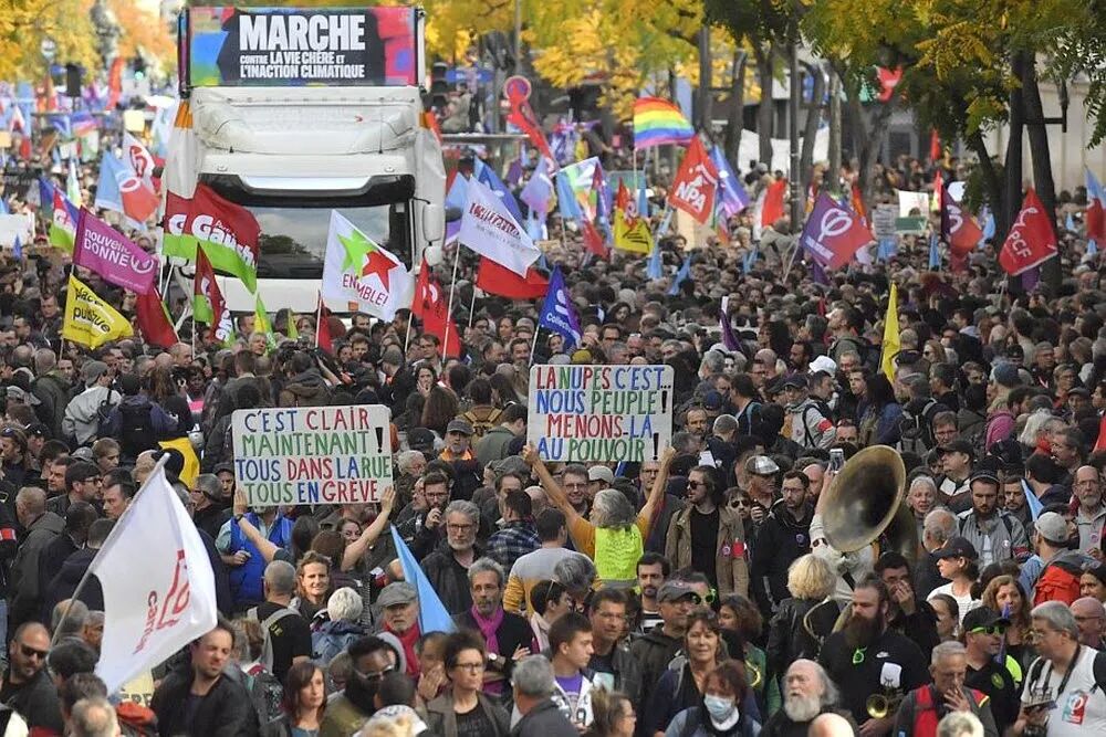 ▲ 参加10月16日巴黎大游行的人们。(法新社图)