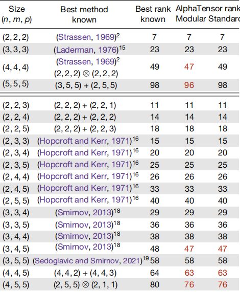 我们先来简要回顾一下 AlphaTensor 的成绩。