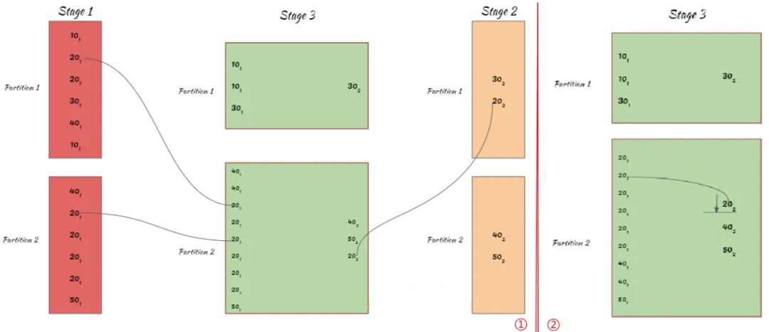 🅰️ shuffle阶段:对所有表进行shuffle,shuffle之后所有表相同key的记录会去往同一个partition