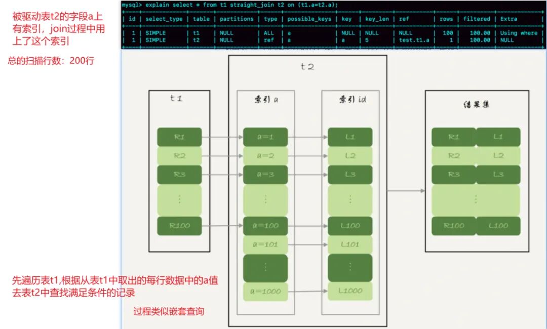 ) engine = innodbselect * from t1 straight_join t2 on (t1.a=t2.a);如果对于以上查询,执行的流程如下: