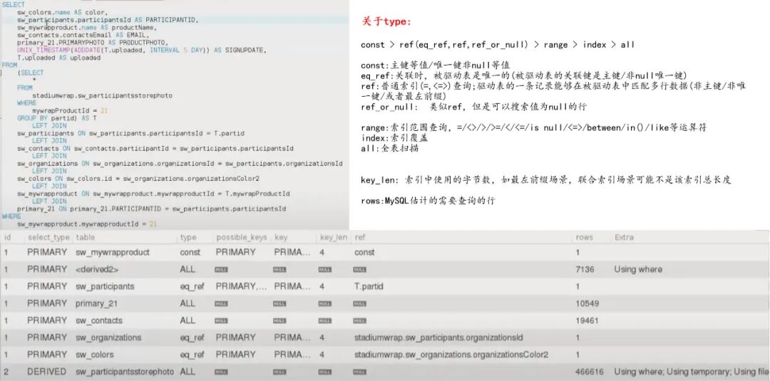 [3] mysql explain output format: https://dev.mysql.com/doc/refman/8.0/en/explain-output.html