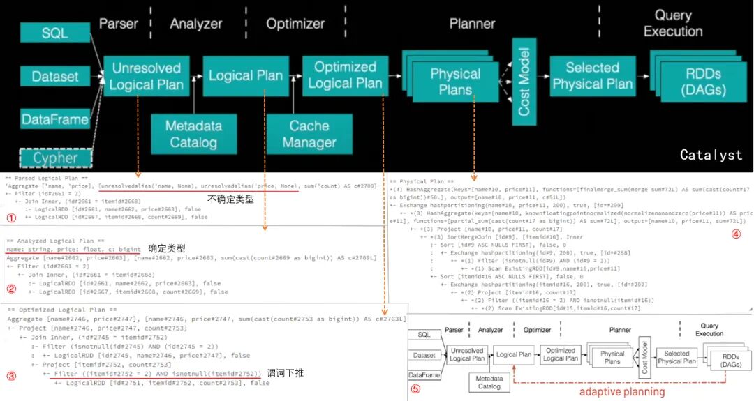 2️⃣Adaptive Query Execution是Spark3.0的功能,Catalyst会在计划执行时收集统计信息,如果发现更好的计划,可以在运行时改变执行计划