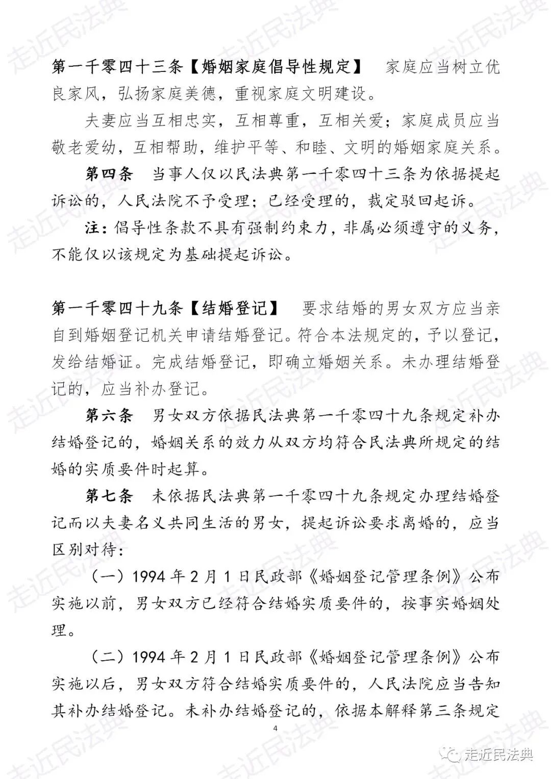 为方便了解《民法典婚姻家庭编司法解释(一)》内容与民法典条文的对应关系,“走近民法典”将民法典条文与该解释条文进行了对照梳理,同时对部分内容作出精炼的解读与提示,并按民法典条文顺序排列。