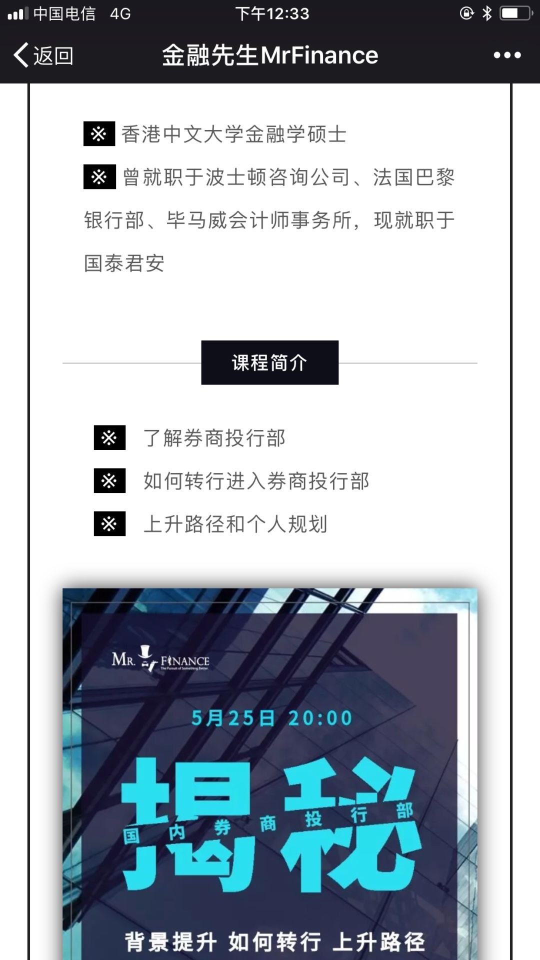 但我生气的是,竟然有人拿我的内容,去为“金融先生”,这样一家搞券商实习收费内推的垃圾机构做培训宣传。老朋友都知道,我最恨的就是坑害年轻学生的收费内推机构,之前我也为此写过文章:另一种投行微商:收费内推。