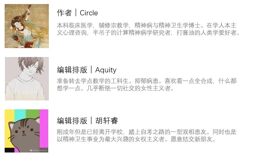 【疾病日记与疾病书写系列】 关于我们 参考文献: [1] Regier DA, Farmer ME, Rae DS, Locke BZ, Keith SJ, Judd LL, GoodwinFK. Comorbidity of mental disorders with alcohol and other drug abuse. Resultsfrom the Epidemiologic Catchment Area (ECA) Study. JAMA 1990;264:2511–2518. [2] Grant BF, Stinson FS, Dawson DA, Chou SP, Dufour MC, Compton W,Pickering RP, Kaplan K. Prevalence and co-occurrence of substance use disordersand independent mood and anxiety disorders: results from the NationalEpidemiologic Survey on Alcohol and Related Conditions. Arch Gen Psychiatry2004;61:807–816.[3] Toftdahl NG, Nordentoft M, Hjorthoj C. Prevalence of substance usedisorders in psychiatric patients: a nationwide Danish population-based study.Social Psychiatry Psychiatric Epidemiol 2016;51:129–140.[4] Lasser K, Boyd JW, Woolhandler S, Himmelstein DU, McCormick D, BorDH. Smoking and mental illness: a population-based prevalence study. JAMA 2000;284:2606–2610.[5] Chengappa KN, Levine J, Gershon S, Kupfer DJ. Lifetime prevalenceof substance or alcohol abuse and dependence among subjects with bipolar I andII disorders in a voluntary registry. Bipolar Disord 2000;2:191–195.[6] Brown SA, Vik PW, McQuaid JR, Patterson TL, Irwin MR, Grant I.Severity of psychosocial stress and outcome of alcoholism treatment. JAbnormalPsychol 1990 Nov;99: 344–348.[7] Hirschfeld RMA, Vornik LA. Recognition and diagnosis of bipolardisorder. J Clin Psychiatry 2004;65:5–9[8] Salloum IM, Cornelius JR, Mezzich JE, Kirisci L, Daley DC, SpottsCR, Zuckoff A. Characterizing female bipolar alcoholic patients presenting forinitial evaluation. Addict Behav 2001;26:341–348.[9] Weiss RD, Greenfield SF, Najavits LM, Soto JA, Wyner D, Tohen M,Griffin ML. Medication compliance among patients with bipolar disorder andsubstance use disorder. JClin Psychiatry 1998;59:172–174[10] Salloum I, Douaihy A, Williams L. Diagnostic and treatmentconsiderations: bipolar patients with comorbid substance use disorders.Psychiatric Annals 2008;38 (11):716.[11] Krishnan KR. Psychiatric and medical comorbidities of bipolardisorder. Psychosomatic Med 2005;67:1–8.[12] Ihsan MSalloum 1, Edson Sherwood Brown 2.