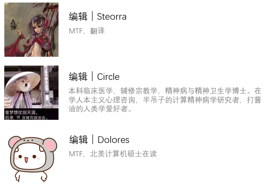MTF,跨性别女性:出生时是男的,自我认同为女的,并且希望性别肯定为女的。