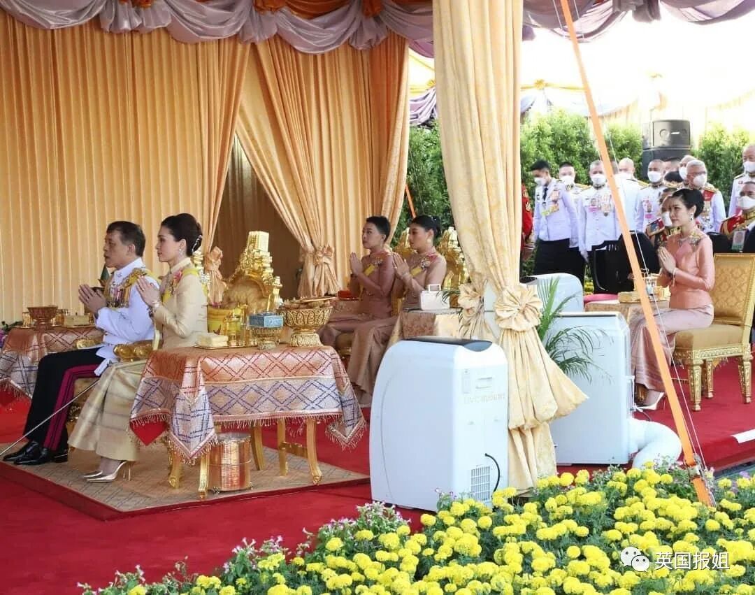 但到了12月份,老泰王的纪念碑奠基仪式,这是王室挺重要的一项活动,泰王、皇后苏提达、贵妃诗妮娜还有两位公主都参加了。