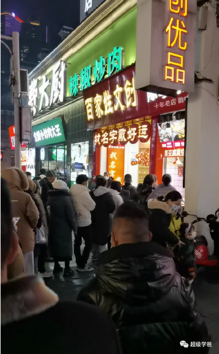 我们顺队摸瓜,才发现队伍有排臭豆腐的,还有排茶颜悦色的。我很诧异啊,长沙人吃臭豆腐的劲头竟然这么大?为了让女朋友喝一杯奶茶,排两个小时一定是真爱。