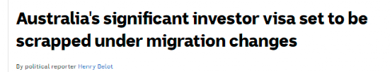但是意想不到的是,SIV,这项备受中国富豪欢迎的澳洲签证,竟然要取消了!9月13日讯 澳大利亚内政部长克莱尔·奥尼尔表示: