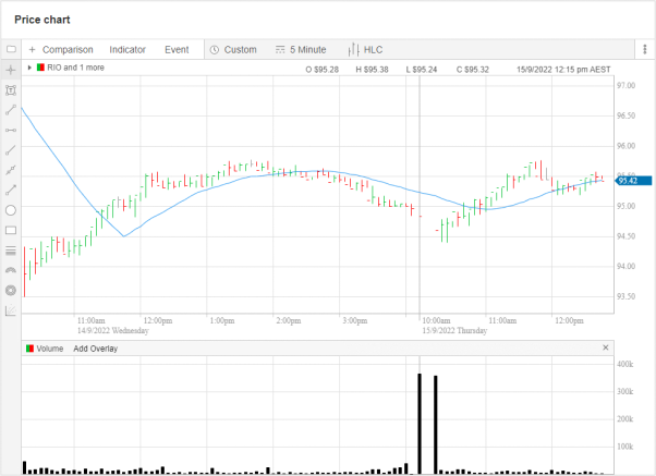 而受合作利好影响的力拓集团(ASX:RIO)股价也在近日出现上涨,在本周资本市场惨遭通胀数据血洗的逆流中迎难而上(澳洲股市在周三市值蒸发超过600亿澳元),目前力拓集团股价逼近96澳元。