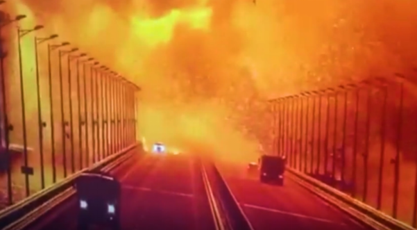 克里米亚跨海大桥爆炸画面,来源:WSJ
