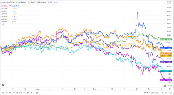 澳元兑各类货币走势一览,数据来源:TVC