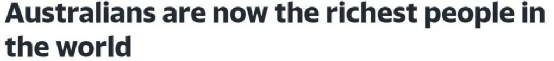 全球财富报告显示,澳洲人个人财富中位数高达$40.9万,是地球上最富有的人群。一直以来,澳洲都是全球富豪最喜欢移居的国家,而大部分都来到了悉尼。所以,澳洲人本来就是有钱人的国家,悉尼本来就是有钱人的城市。幸福感