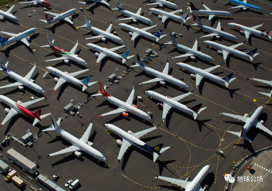 在加拿大,多个航班取消以后,机场里停满了飞机。图源:网络