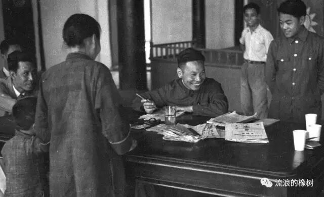 正在“过堂”的“蒋青天”。这类照片很多,“蒋县长”执政形象都很亲和。