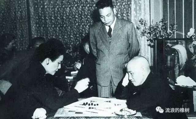 蒋氏家族聚会。蒋公与夫人下跳棋,蒋经国为裁判。