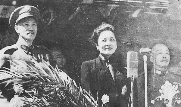 台湾收回周年庆典上,蒋介石、宋美龄和台湾行政长官陈仪。