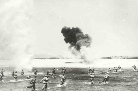 第三次战役期间,跨汉江作战的志愿军步兵。