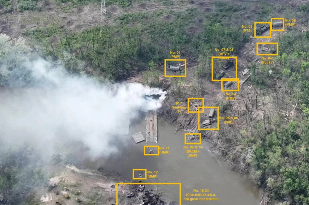 5月11日,俄军在北顿涅茨河比洛霍里夫卡河段燃烟掩护架设了两座浮桥,随后,俄军2个营级战斗群在这个地域,遭到乌军第80独立空中突击旅的榴弹炮群以无人机引导,实施的远火打击,几乎遭到团灭。