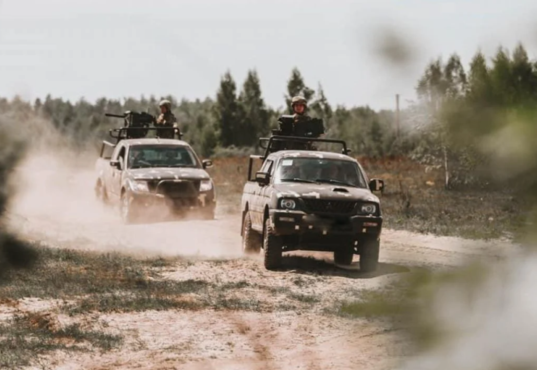 顿巴斯战场的乌军驾驶配备美式Mark19自动榴弹发射器的皮卡进入战场。