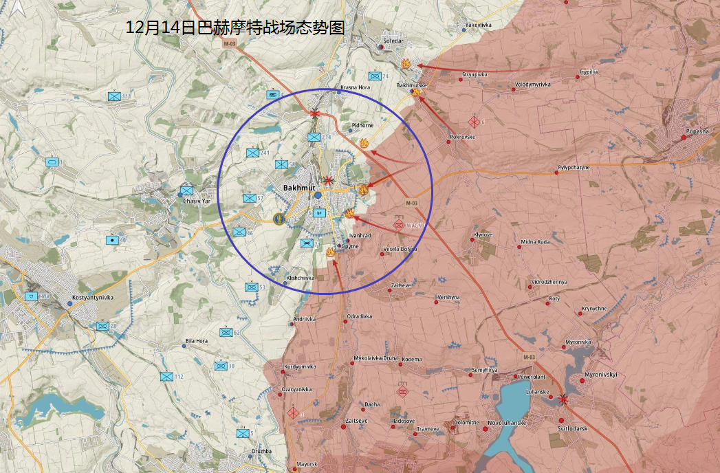 仅看俄方新闻,乌克兰及其身后的北约、英美等国,完全小菜一碟。因此,就俄军战报而言,战至12月14日,俄军声称瓦格纳佣兵突破了巴赫穆特东部的乌克兰防线,完全控制了巴赫穆特香槟酒庄和“Siniat”企业,正在巴赫穆特东南部和东部的几条街道上推进。